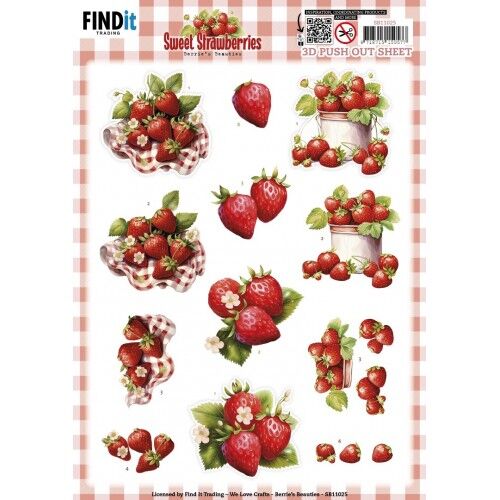 3D Push out Sheet – Berries Beauties – Sweet Strawberries – Strawberries in a Basket