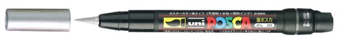 Zet de mooiste creaties neer op elke ondergrond met de POSCA brush verfmarker. Schilder, kleur, decoreer en teken watervaste lijnen op o.a. hout, textiel, keramiek en glas. Met de volledig dekkende kleur zwart en speciale, soepele penseelpunt komt u op plekken waar anderen niet komen, zoals plooien, bochten, hoekjes of gaatjes. Maar het penseel is ook ideaal voor liefhebbers van kalligrafie, striptekenaars en beginnelingen. De hoeveelheid verf doseert u eenvoudig met de drukknop aan het uiteinde van de zwarte penseelmarker.