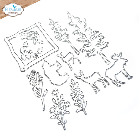 Elizabeth Craft Designs Dies. Forest Friends & Frame from Whispers of Nature. Designed by Everyday Elements. Approximate dimentions: Largest Die Size: 2.5″ x 5.8″ (6 x 14.7 cm) – 12 Dies. Manufacture of scrapbooking products, stamps, cutting dies and more. Made in Poland.